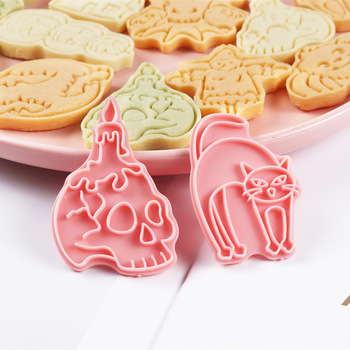Azafrán 8 Uds juego de cortador de galletas de Halloween molde de caramelo Castillo de gato estampador de plástico Caja de galletas de Halloween