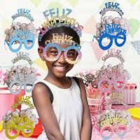 Il nuovo Set di decorazioni per feste di buon compleanno spagnolo include fascia e occhiali per le celebrazioni